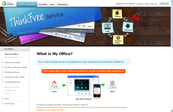 Si estás acostumbrado a trabajar con Microsoft Office, tanto el el estilo como las funciones y los formatos utilizados por ThinkFree te serán de lo más familiar. ¿La diferencia? Podrás trabajar desde cualquier equipo, compartir tus documentos online y ver tu colección desde cualquier lugar.